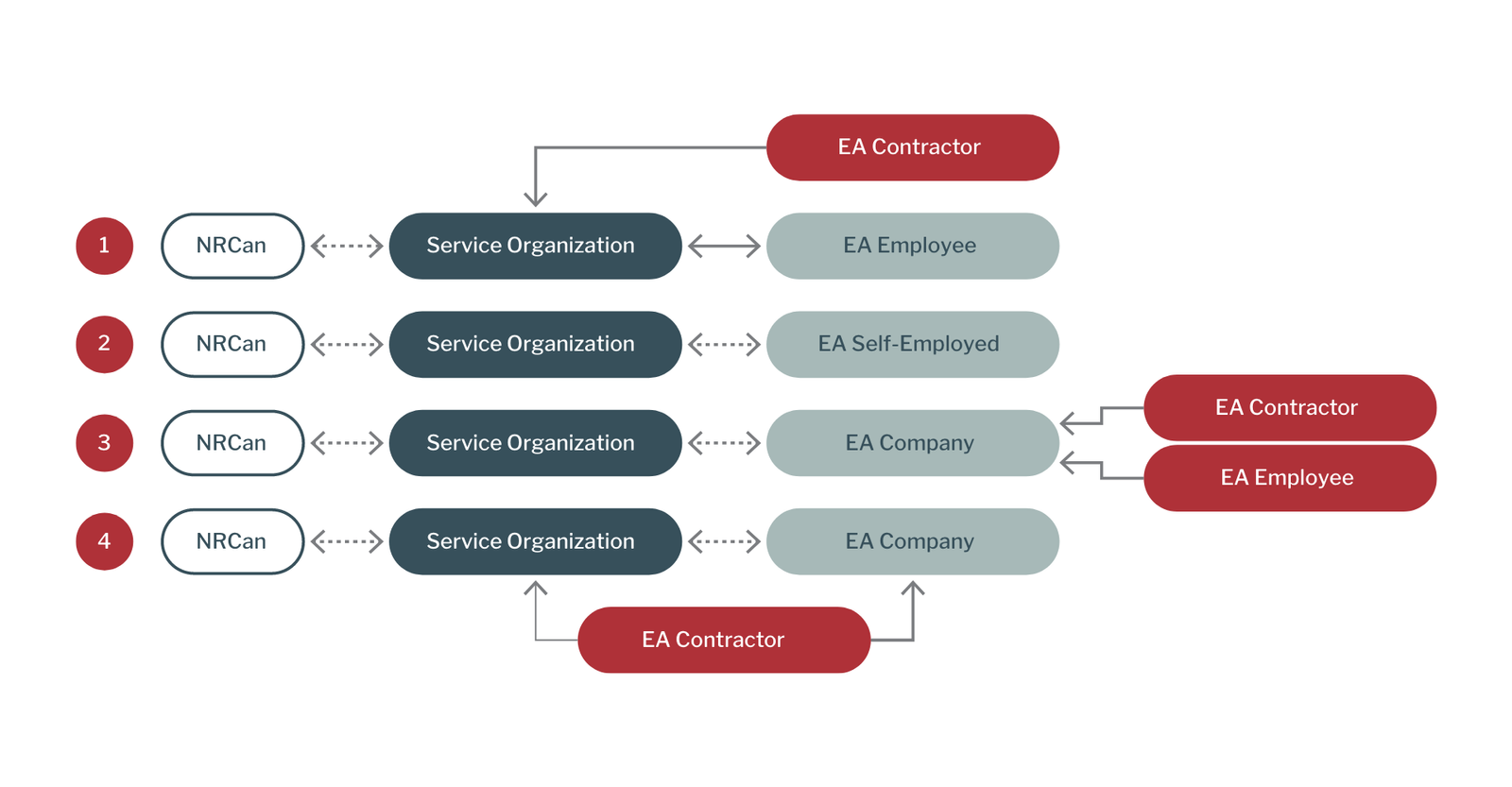 EAs and SOs may work together under a variety of business structures. These relationships can vary based on business models, geographic reach, and individual or corporate arrangements.