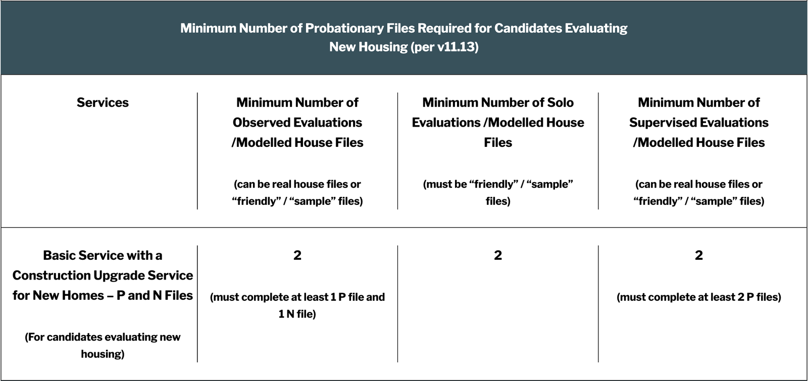 EAs must commit to either existing home or new construction audits for their probationary files and NRCan registration. A second probationary process is required to offer the other service. Please refer to the below chart.